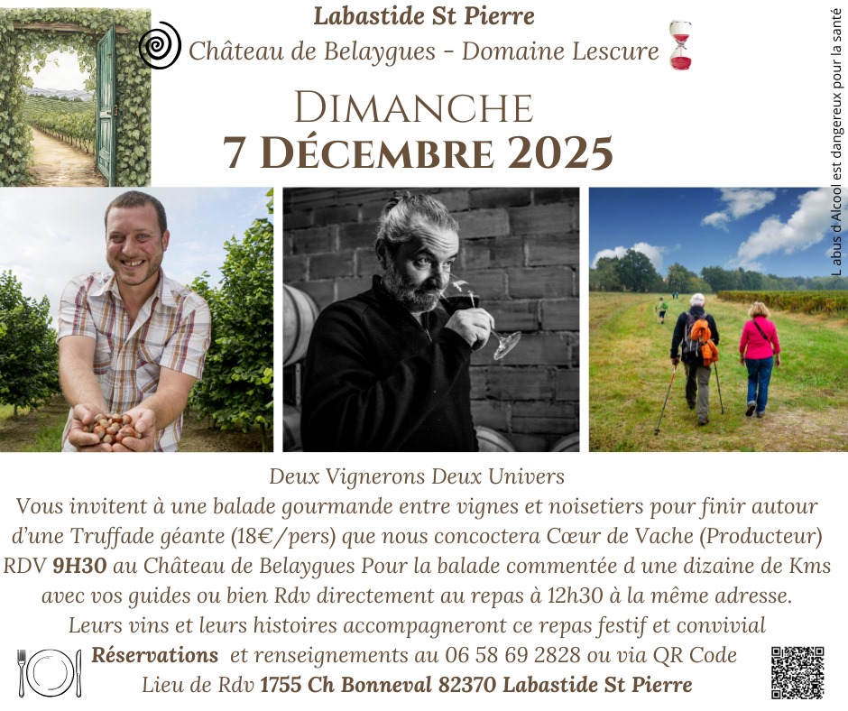 12h30 Arrivée au chateau de Belaygues pour une truffade conviviale autour des vins des deux domaine.